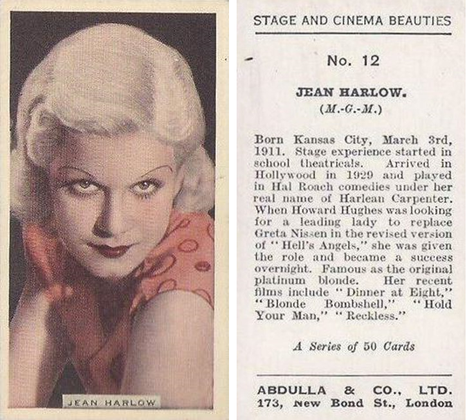 No.12/50 This is the same as the Godfrey Phillips Stage and Cinema Beauties set, except for the Abdulla advertising on the back of the card.