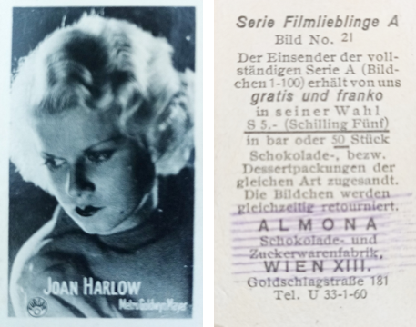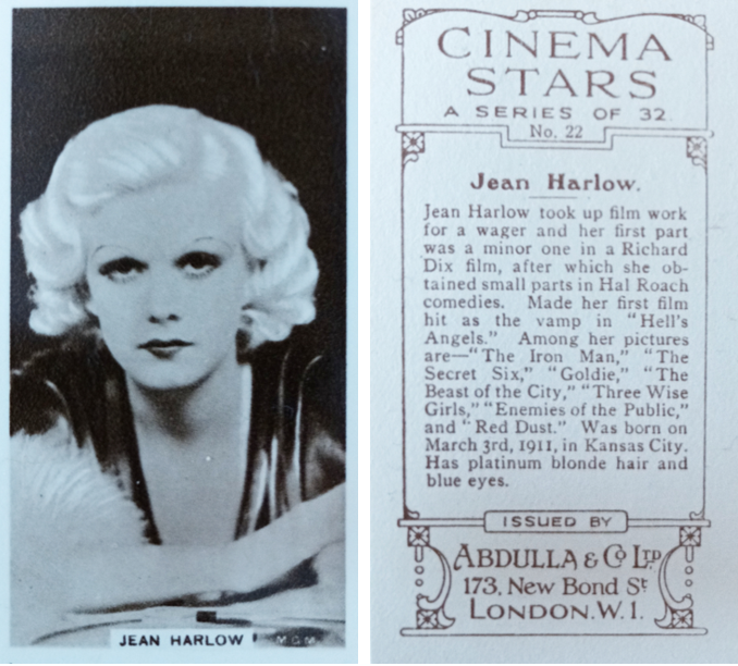 No.22/32 Abdulla issued six sets of cards called Cinema Stars; this set is identified by the brown tone on the front.