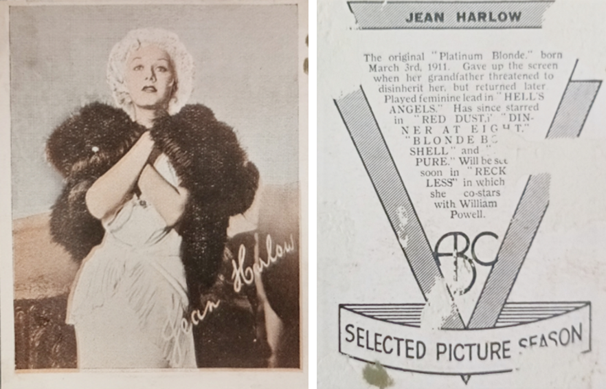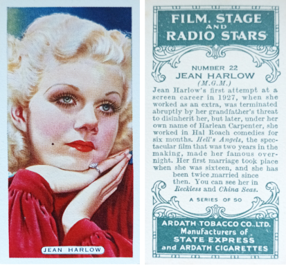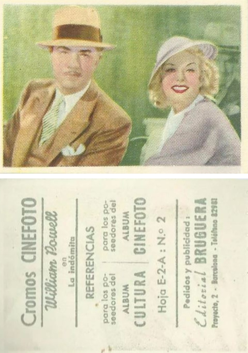 No2/12 This card from Set E-2-A is listed as William Powell but the image features Jean in the film "Reckless".