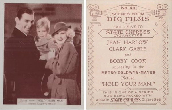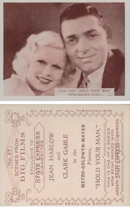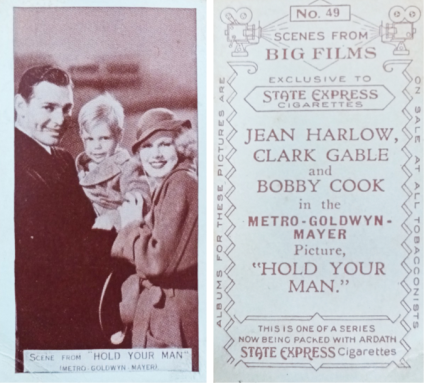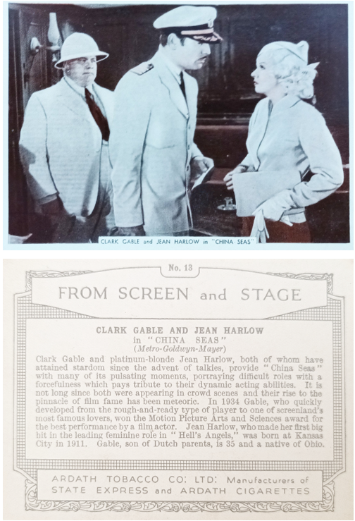 No.2/12 This card from set E-7-A is listed as Clark Gable but the image features Jean along with May Robson in the film "Wife vs Secretary".
