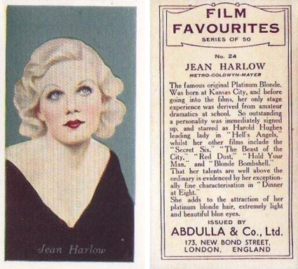 No.24/50 The same as the Godfrey Phillips Film Favourites set, except the back text has a reddish tint with Abdulla advertising.